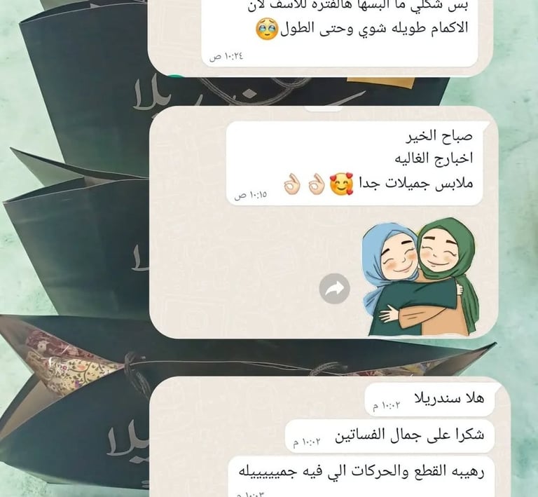نصنع أزيائنا في مشغل خاص بنا في بلدنا عمان ونقوم ببيعها إلكترونيا, كما أننا نشحن لكل دول العالم